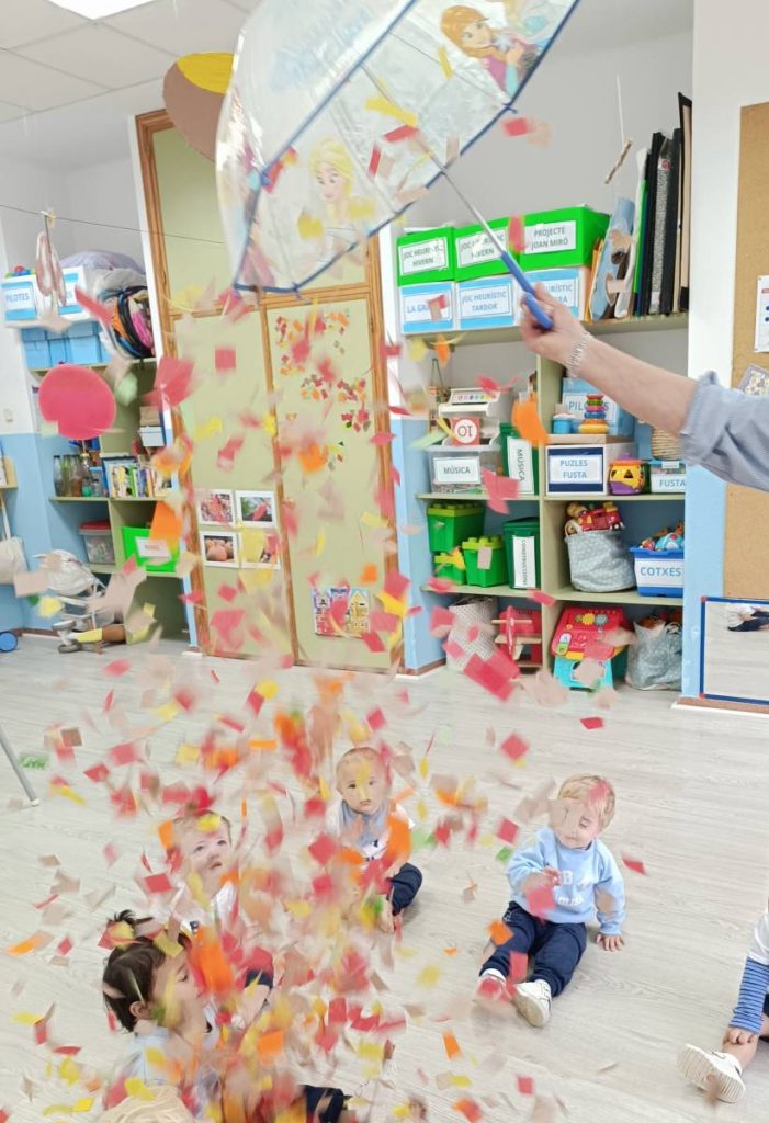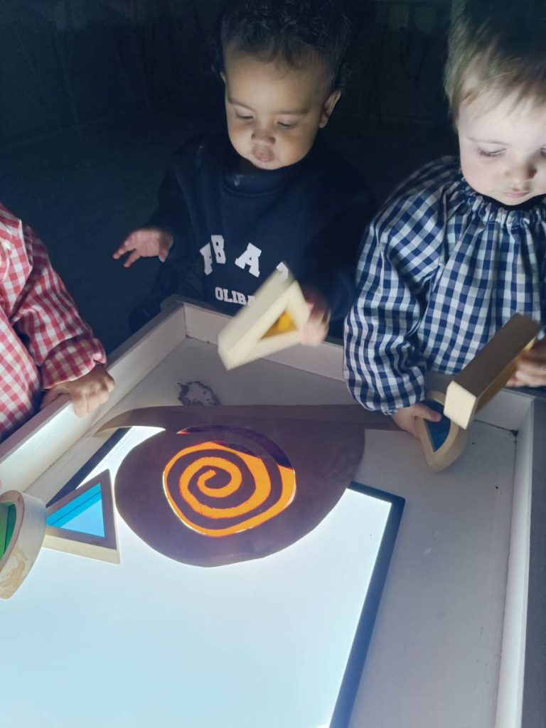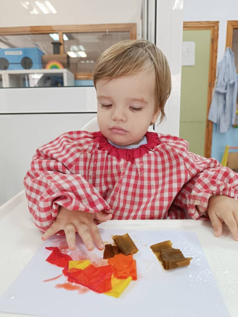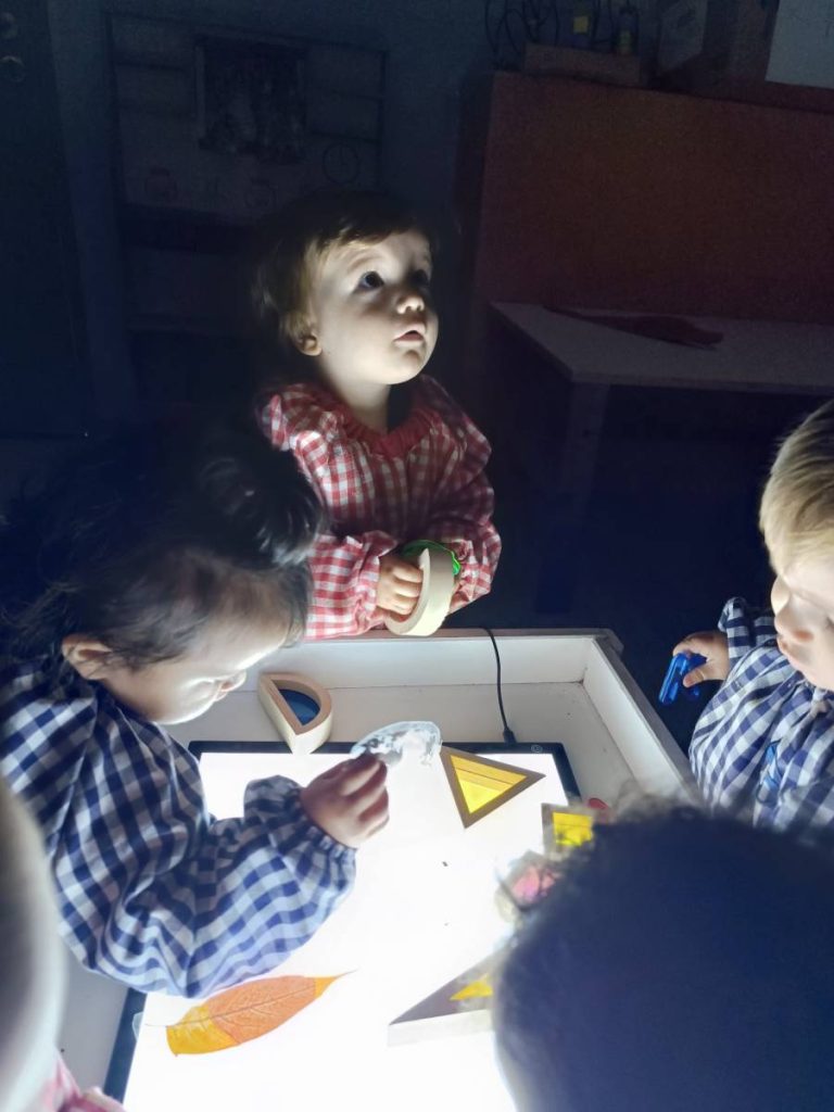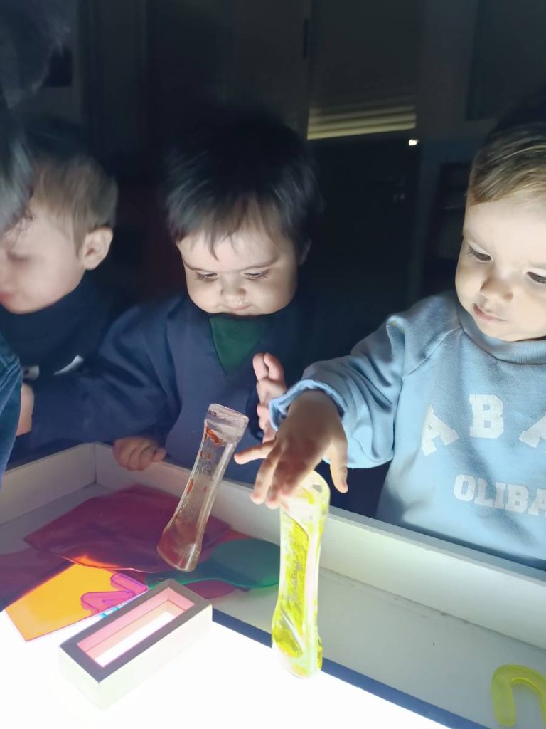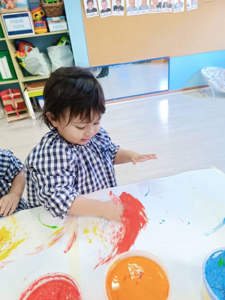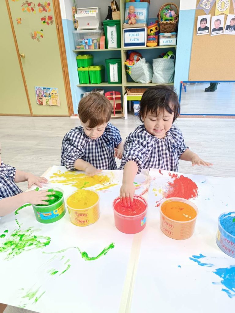 A l’aula realitzem activitats com jugar amb materials naturals, safates sensorials, pintura amb les mans, llum i ombres, o experiments amb diferents textures. Aquest tipus de propostes estimulen la curiositat, la creativitat i la capacitat d’atenció, alhora que fomenten l’autonomia i la confiança en un mateix.