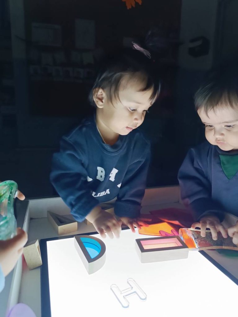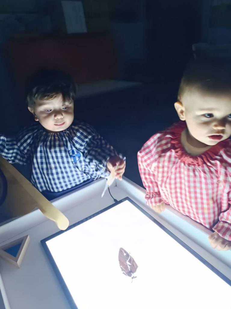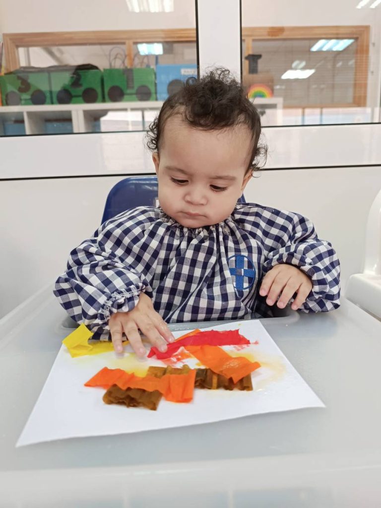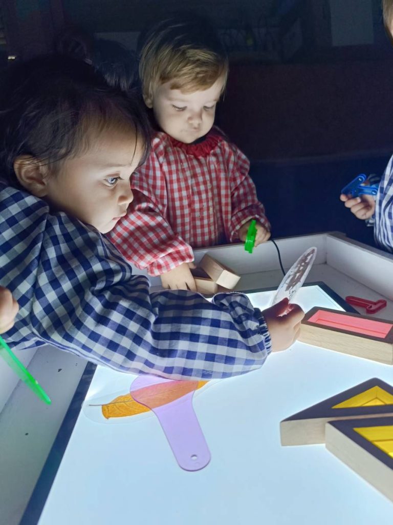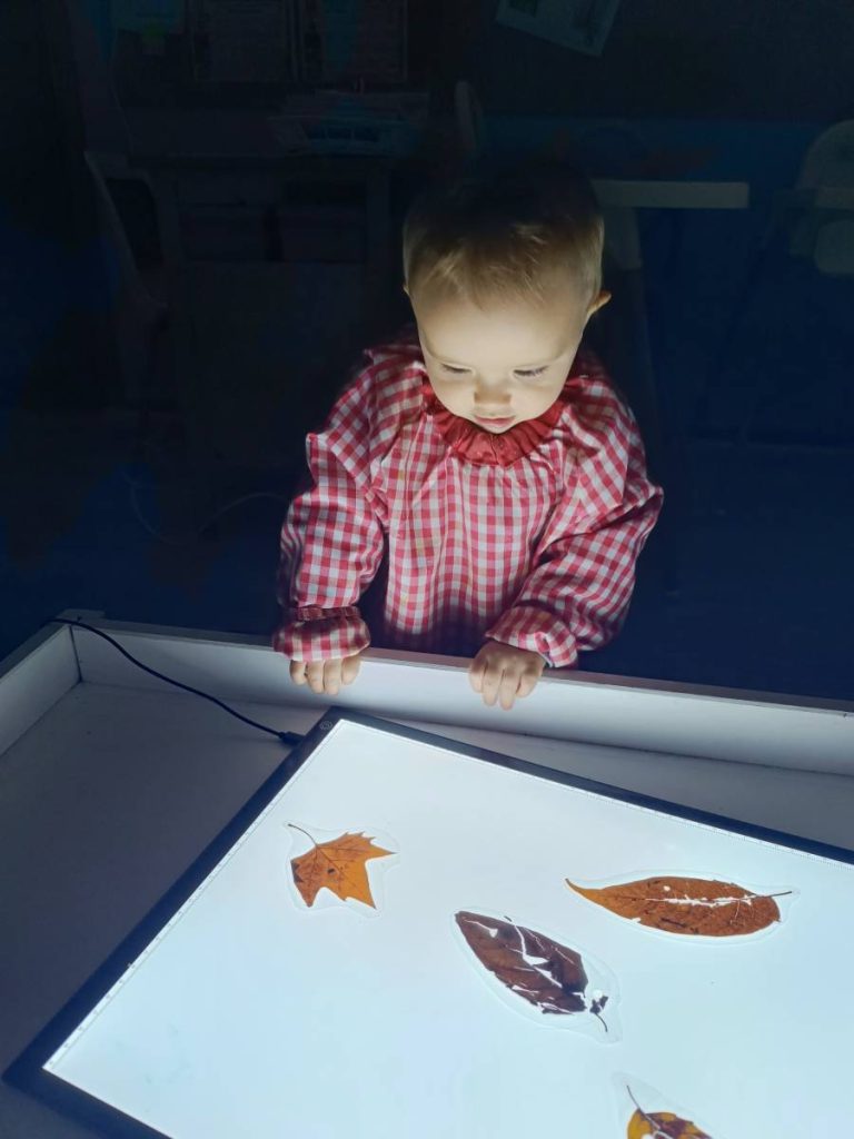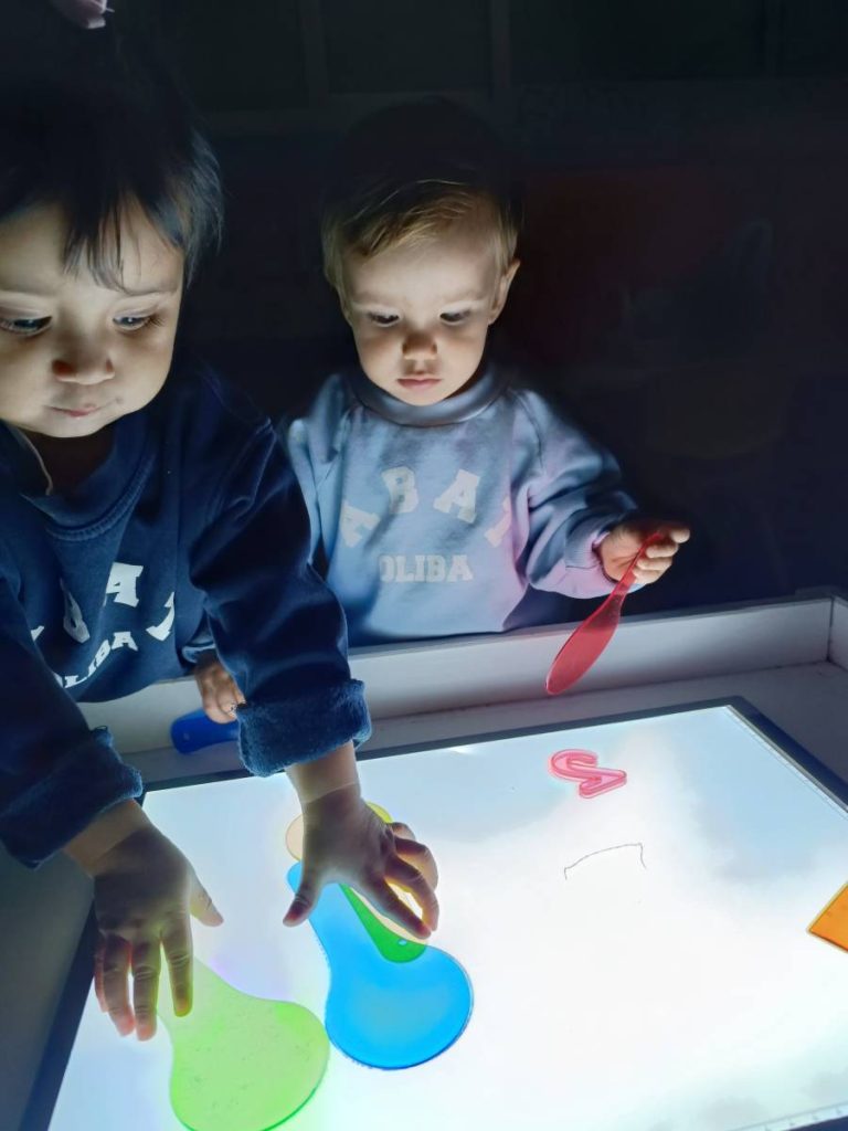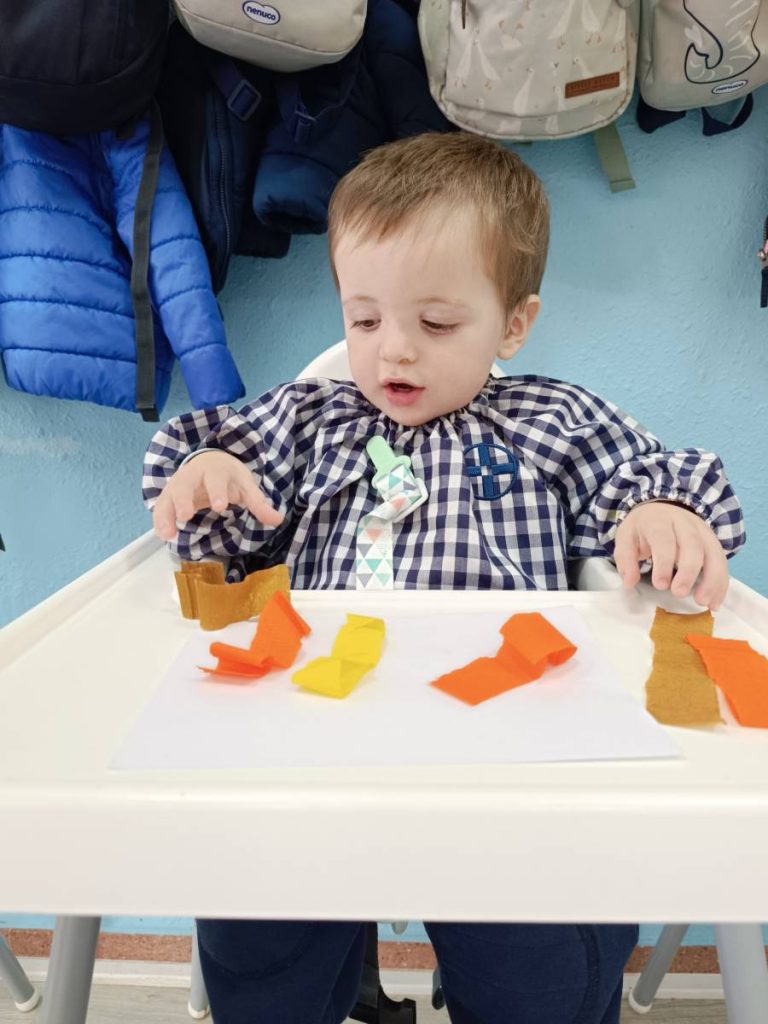 A l’aula realitzem activitats com jugar amb materials naturals, safates sensorials, pintura amb les mans, llum i ombres, o experiments amb diferents textures. Aquest tipus de propostes estimulen la curiositat, la creativitat i la capacitat d’atenció, alhora que fomenten l’autonomia i la confiança en un mateix.