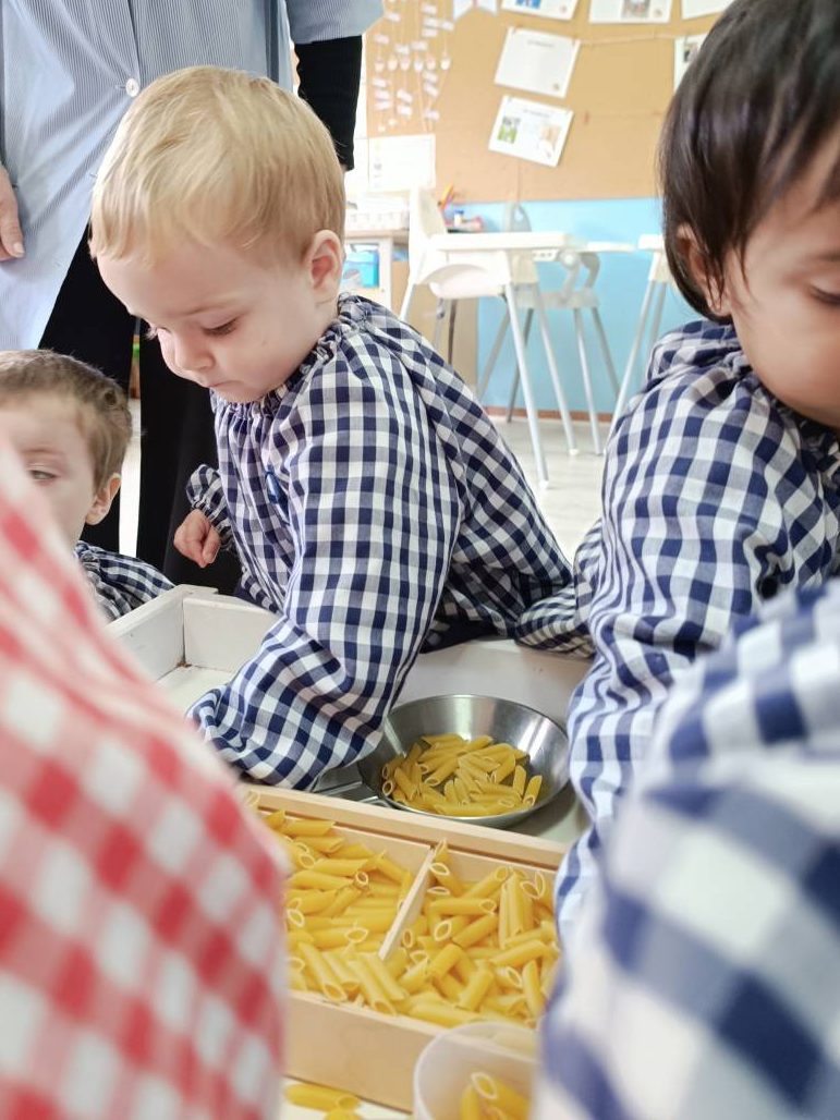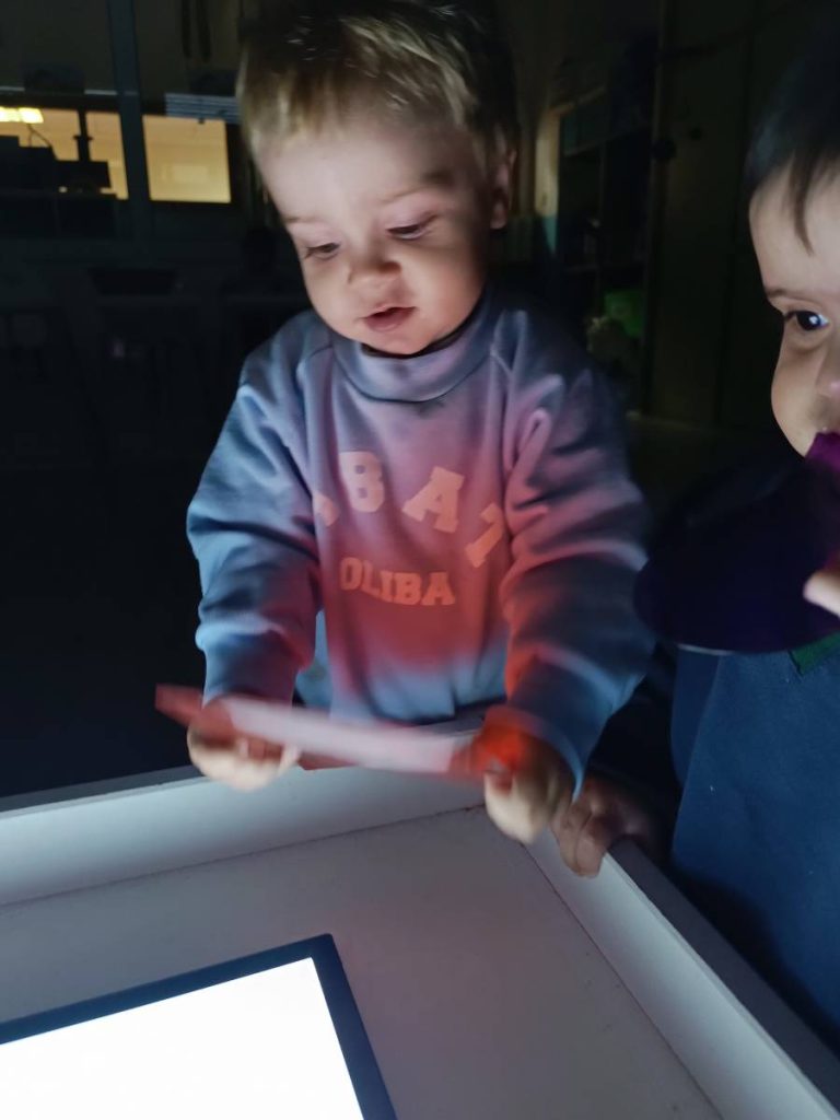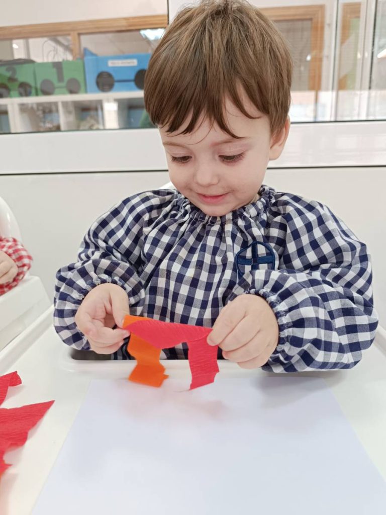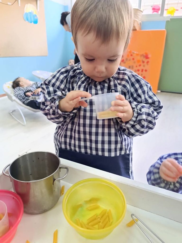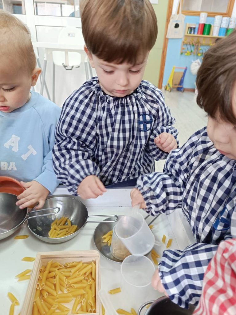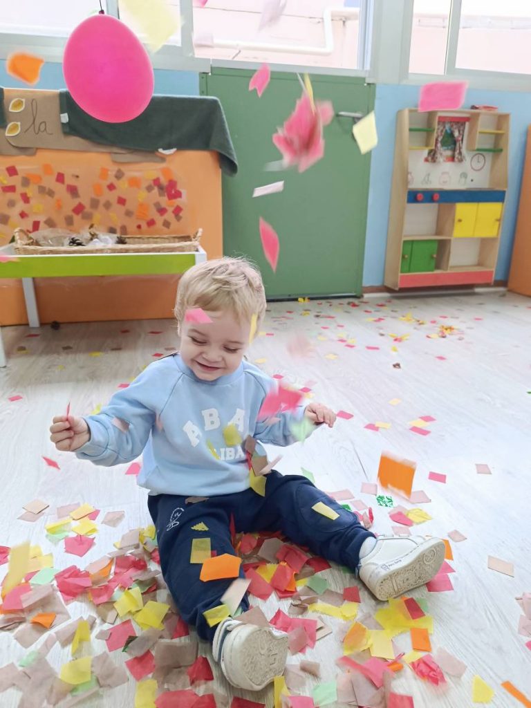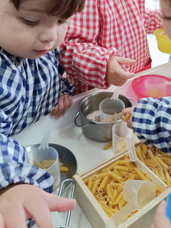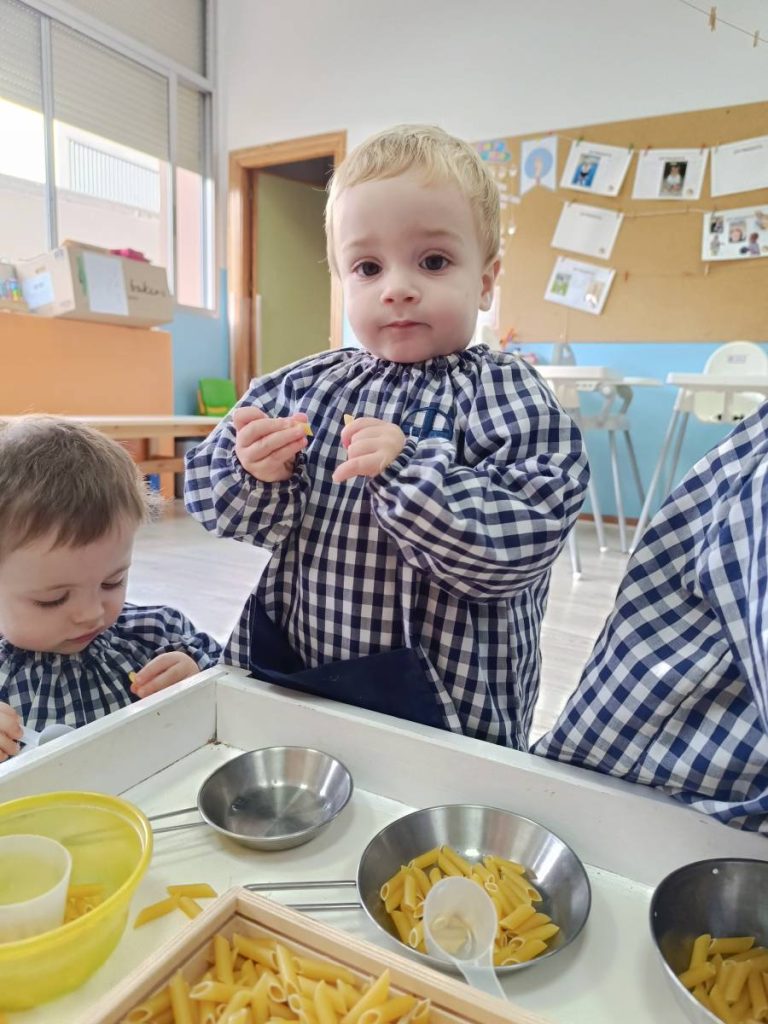 A l’aula realitzem activitats com jugar amb materials naturals, safates sensorials, pintura amb les mans, llum i ombres, o experiments amb diferents textures. Aquest tipus de propostes estimulen la curiositat, la creativitat i la capacitat d’atenció, alhora que fomenten l’autonomia i la confiança en un mateix.